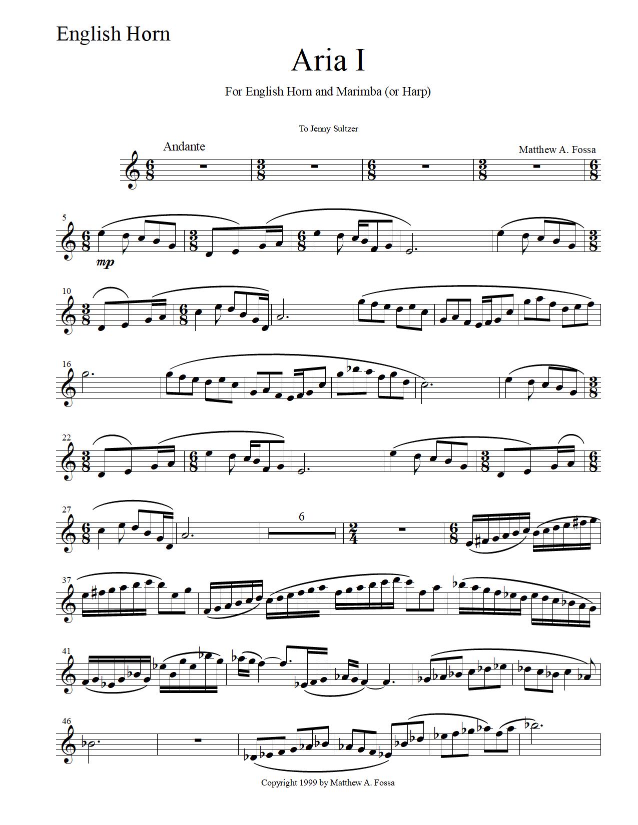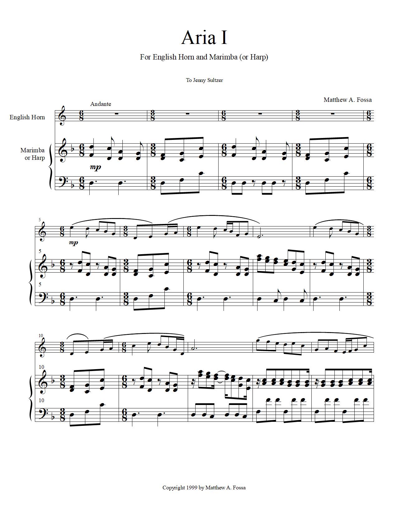 The work is in D minor and has a main melody that alternates between 6/8 and 3/8. Aria I is dedicated to Jenny Sultzer, a percussionist from Hawaii who was the first person to teach me about marimba music while I was at FSU.