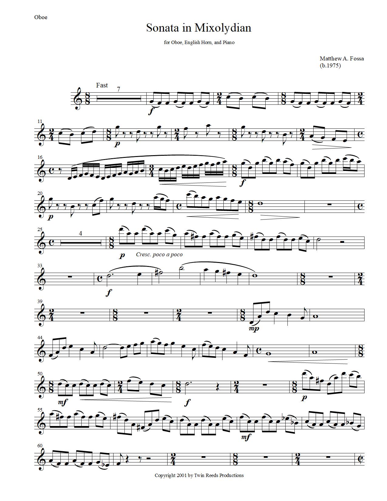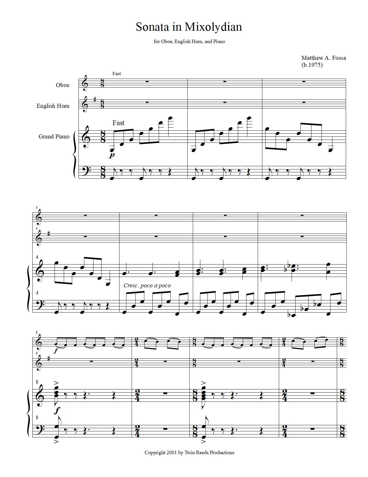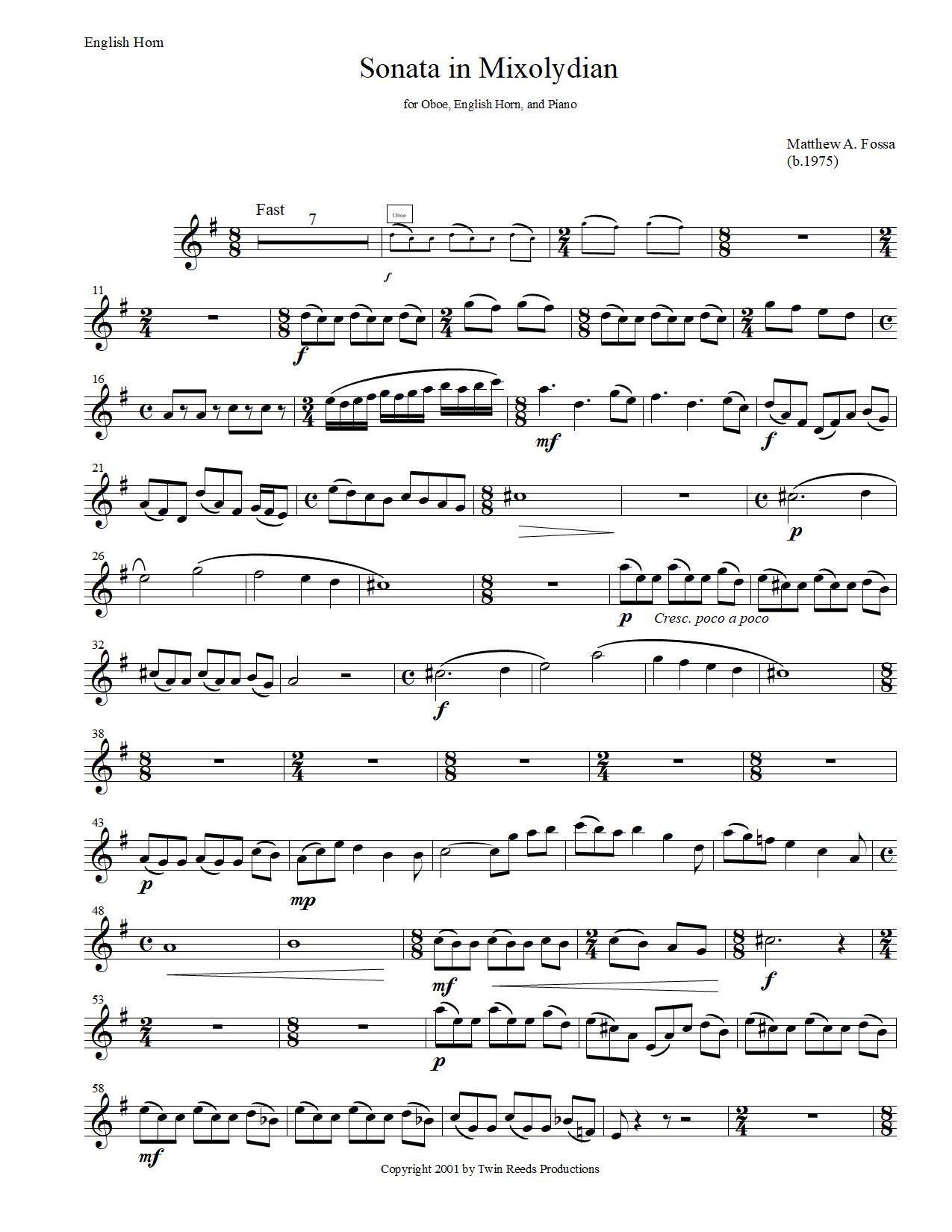 I premiered Sonata in Mixolydian in this final version in the Winter of 1998 at the Crane School of Music during a Phi Mu Alpha Sinfonia Recital with my friends (and fellow Sinfonians) Dr. Steve Johnson on Piano and Brian Schneckenburger playing the English Horn part on Trumpet.