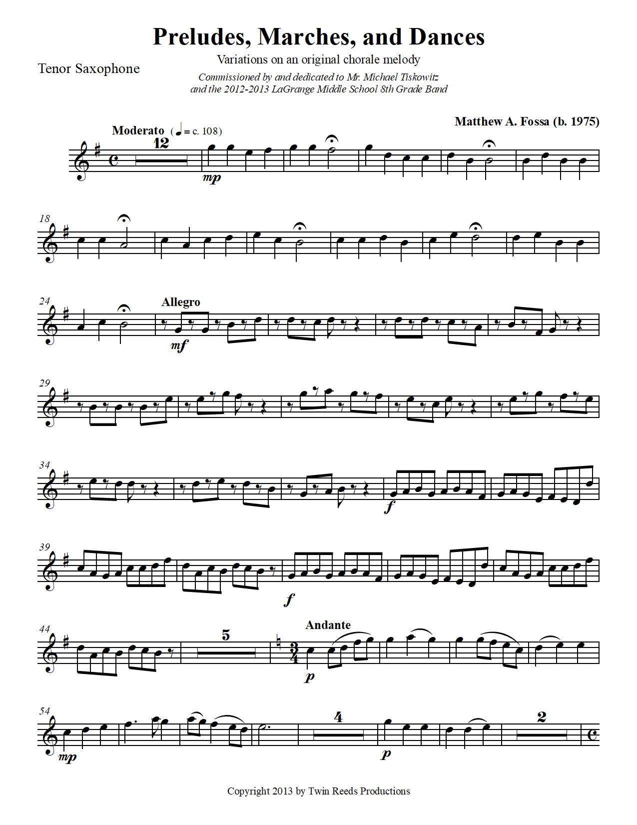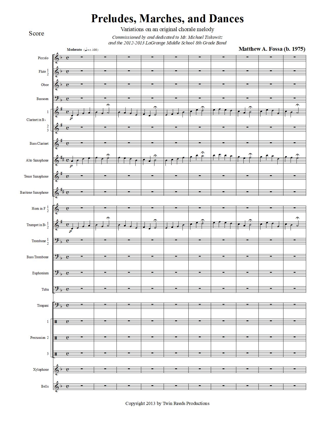 "Preludes, Marches, and Dances," was premiered in the Spring of 2013.