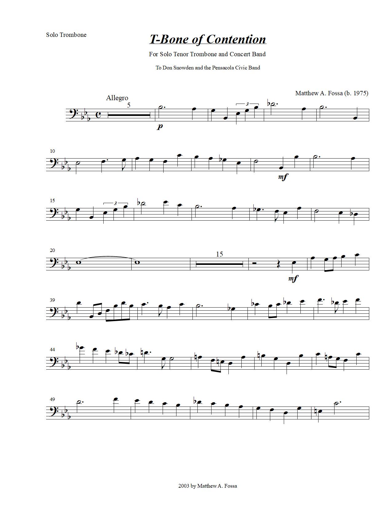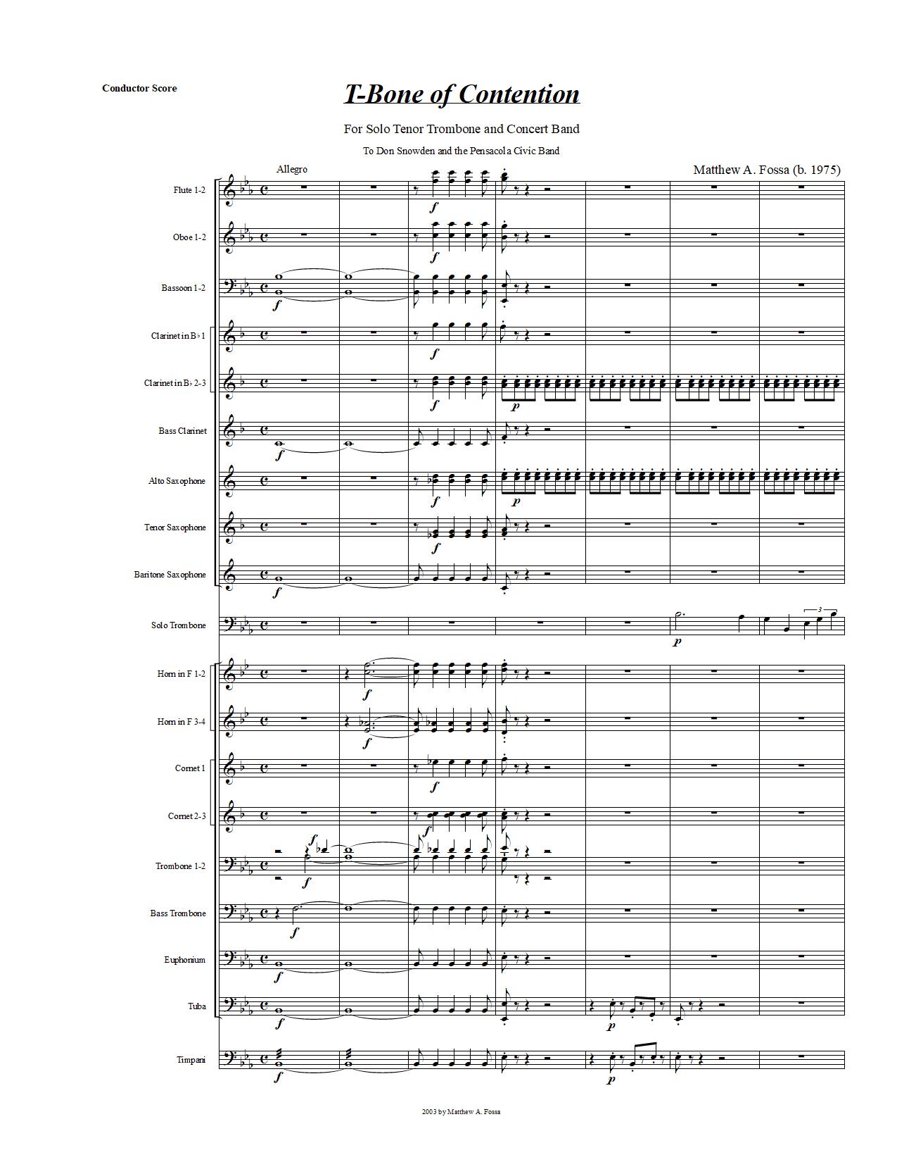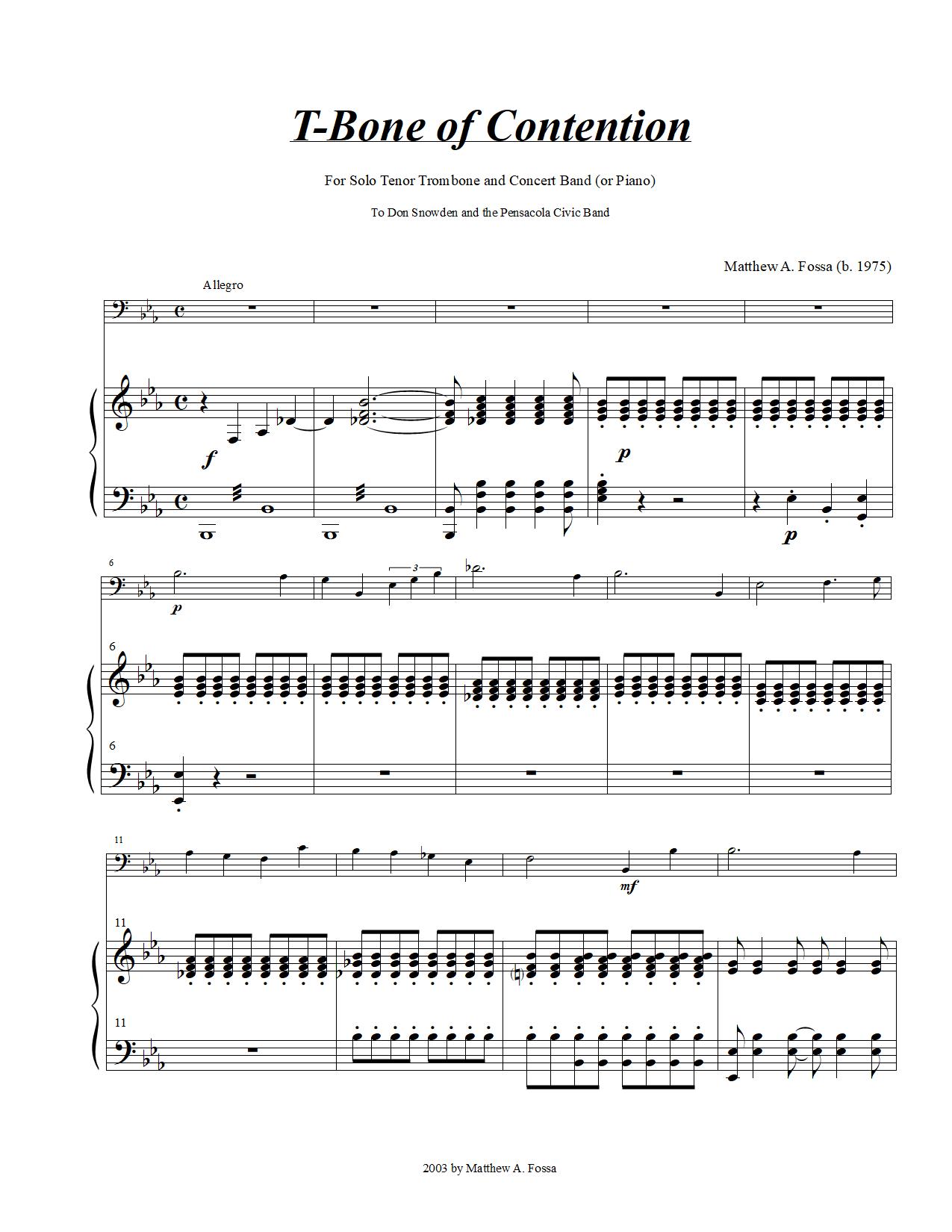 But not before mentioning that, "T-Bone of Contention," was premiered in the Summer of 2004 in Pensacola's Seville Square with Civic Band Maestro Don Snowden playing the heck out of the solo trombone part and Yours Truly on the podium waving the baton!